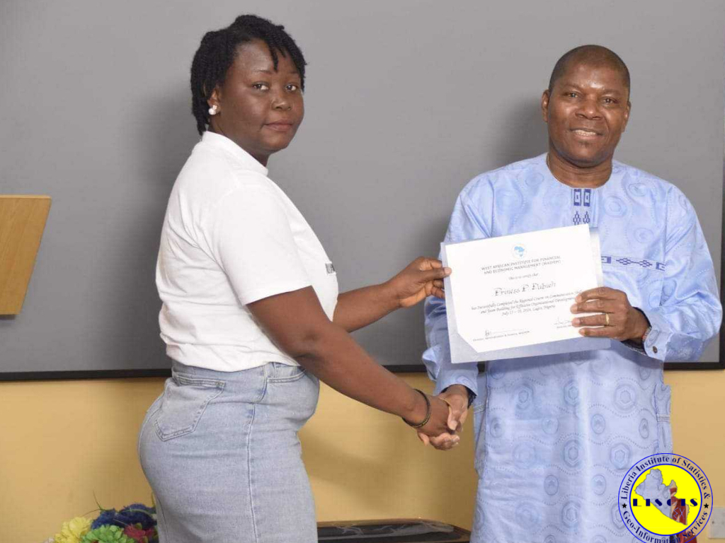 Three staffers from.LISGiS, assign in the office of the Director-General, recive awards for a five-days training in Communication Skills and Team Building. The training started on Monday 15th of July and officially came to an end on Friday, July 19, 2024 at the West African Institute for Financial and Economic Management ( WAIFEM) in Lagos, Nigeria.
